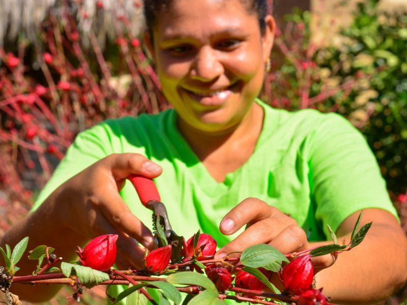La flor de jamaica es una aliada de los programas de Envol Vert, ya que se trata de un cultivo transitorio de bajo impacto sobre el suelo, que se adapta bien a las condiciones de sequía presentes en ciertas temporadas en el Caribe. Su cultivo se maneja de manera agroecológica, y las y los productores han establecido acuerdos de conservación de sus bosques al comprometerse a participar en esta actividad económica.