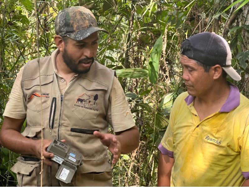 El apoyo del SERNANP (Servicio Nacional de Áreas Naturales Protegidas por el Estado) del Bosque de Protección Pui Pui fue clave para realizar esta actividad. La institución no solo facilitó los equipos necesarios, sino que también brindó una capacitación práctica sobre su uso adecuado con un biólogo especialista en mamíferos, desde la configuración inicial y los criterios técnicos para elegir los puntos de instalación hasta la instalación de las cámaras en el bosque.